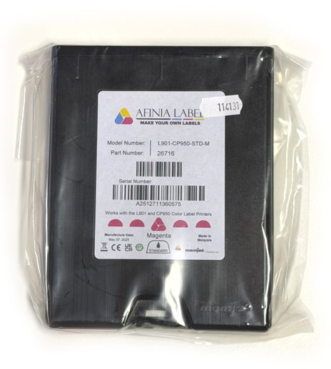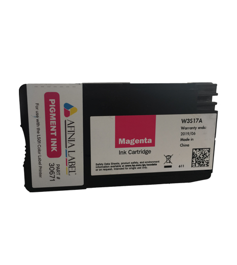 Patrone PIGMENT MAGENTA für AFINIA L501 und L502 Pigmentierte Tinte mit guter Auflösung und hoher Beständigkeit Ideal für mattes Etiketten Papier MC24 und MC85 und matte Folien MC20, MC30, MC110 und MC111 Patronenstaffelpreise auf Anfrage ACHTUNG nicht mit DYE-INK-DRUCKKÖPFEN verwendbar