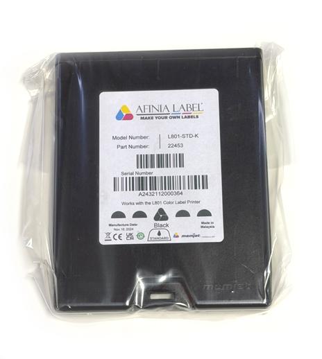 Patrone PIGMENT SCHWARZ für AFINIA L501 und L502 Pigmentierte Tinte mit guter Auflösung und hoher Beständigkeit Ideal für mattes Etiketten Papier MC24 und MC85 und matte Folien MC20, MC30, MC110 und MC111 Patronenstaffelpreise auf Anfrage ACHTUNG nicht mit DYE-INK-DRUCKKÖPFEN verwendbar