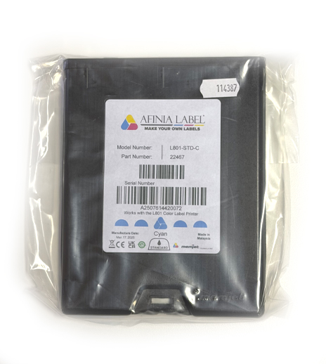 Patrone PIGMENT CYAN für AFINIA L501 und L502 Pigmentierte Tinte mit guter Auflösung und hoher Beständigkeit Ideal für mattes Etiketten Papier MC24 und MC85 und matte Folien MC20, MC30, MC110 und MC111 Patronenstaffelpreise auf Anfrage ACHTUNG nicht mit DYE-INK-DRUCKKÖPFEN verwendbar